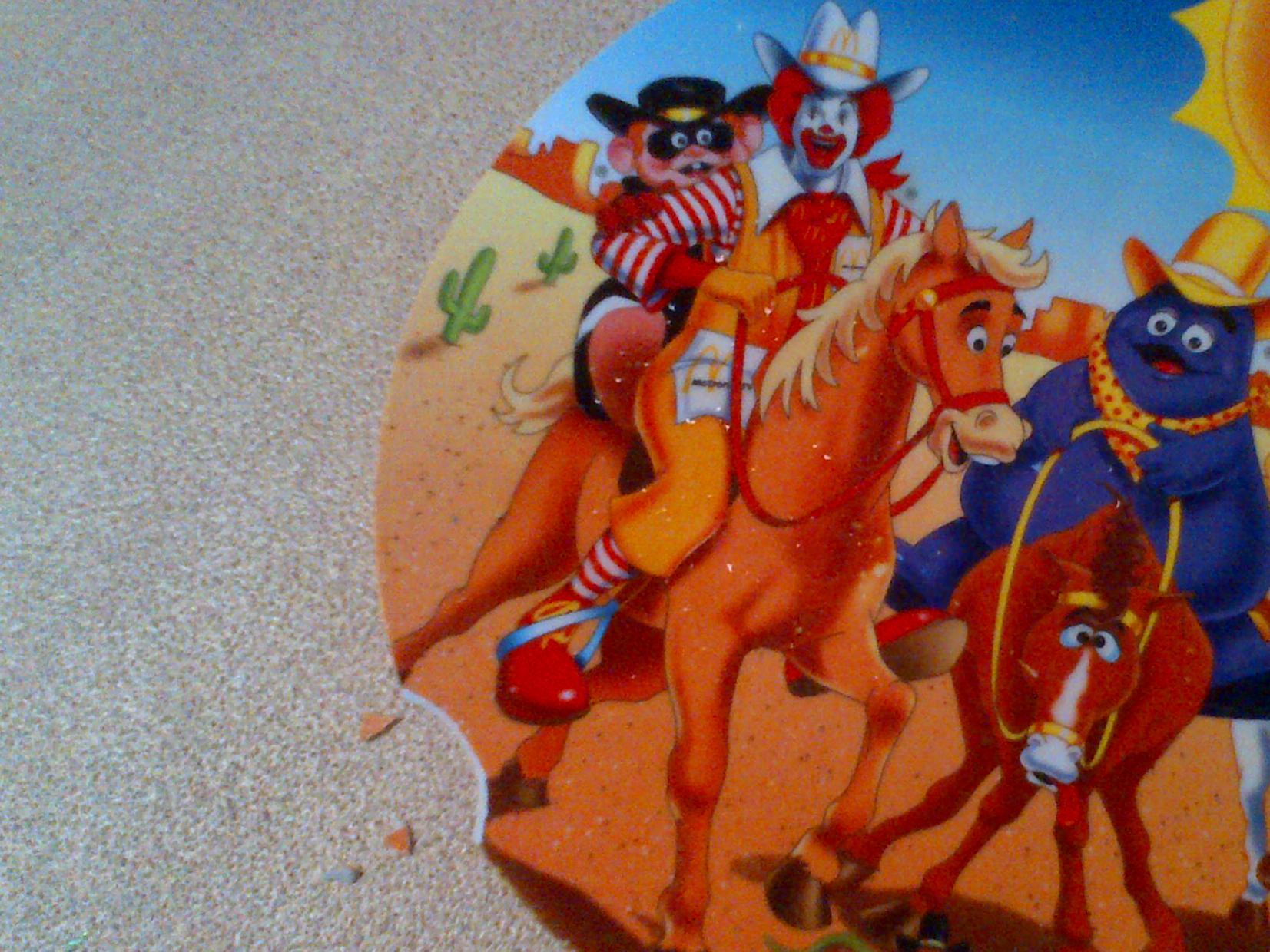 Last Saturday I was in the kitchen while Gracie was eating her breakfast, and I heard sharp cracking sound. I thought it was her sippy cup hitting the wood floor in the dining area. A few minutes later I went to check on her, only to discover that she had bitten off a piece of a Ronald McDonald plate! These plates are made from some type of very hard plastic. It’s amazing Gracie hasn’t broken any of her teeth.