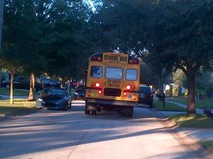 Yesterday I found out that Gracie’s bus has been waiting at our house for less than 5 minutes to drop Gracie off. Why the wait? Because our aftercare provider, Christine, cannot be in 2 places at the same time during the drop-offs. Christine has to meet her daughter, Sam, and Gabby at their bus stop, then hurry over to our house (3 blocks away) to get Gracie off of her bus. This goes on for a while until the school system gets wind of it, then we’re summarily informed we need to come up with a solution. Now. Ummm… kind of hard to think under pressure. Does Kristine (Gracie’s mother) quit her job over 5 minutes? No, that’s stupid. Oh good, the school has a suggestion. The school asks if Gabby and Sam can walk to our house from their bus stop. Seriously?! These are little girls! Do these people watch the news?! Then I thought maybe Gracie’s bus can drop her off at Gabby’s bus stop. Oh, nope, forgot the school system has a ‘rule’ against different pick-up and drop-off locations. Hmmm… what to do, what to do?